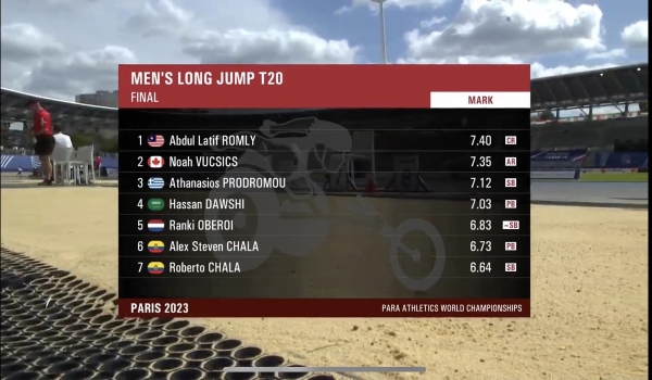 Pada aksi final lompat jauh T20 berlangsung di Stadium Charlety, atlet berusia 26 tahun itu melakukan lompatan sejauh 7.40 meter (m) pada percubaan kedua, mengatasi rekod kejohanan 7.39m yang dilakukan Ranki Oberai dari Belanda pada edisi Dubai 2019.
