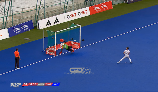 Muhammad Muhibuddin Moharam berjaya meletakkan UITM dihadapan pada babak pertama selepas UITM diberikan penalti stroke.