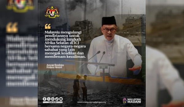 Malaysia ulangi komitmen sokong Afrika Selatan heret Israel ke ICJ