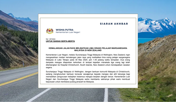 Dua pelajar Malaysia terbunuh dalam kemalangan jalan raya di New Zealand