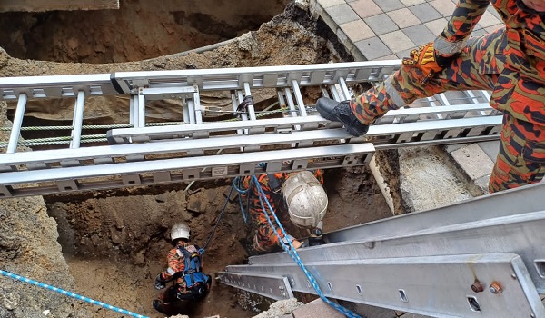 Wanita jatuh gaung selamat dibawa keluar