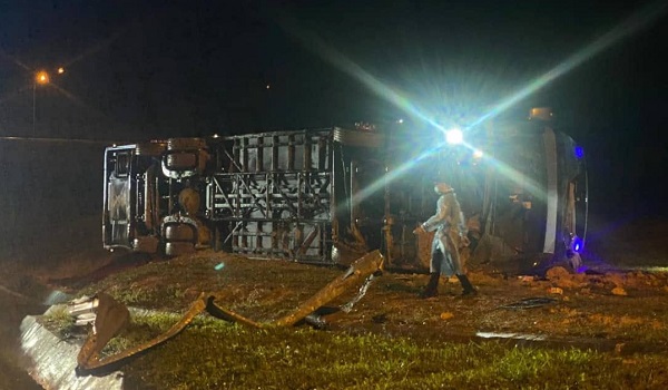 Bas ekspres bawa 36 penumpang terbalik di Lebuhraya PLUS