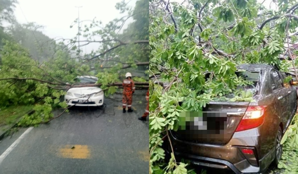 Empat beranak nyaris maut pokok tumbang hempap kereta