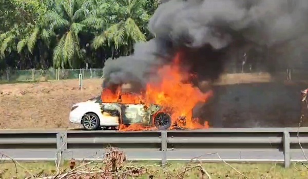 Bas ekspres terbakar di Lebuhraya PLUS