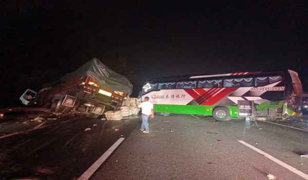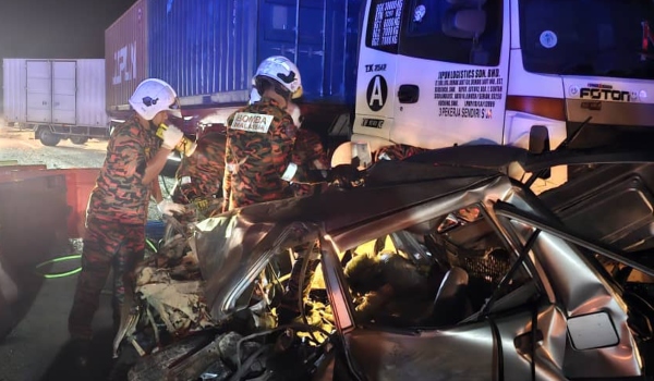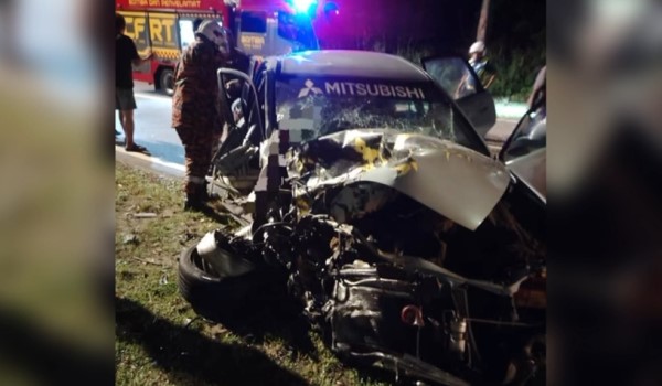 Dua maut kereta bertembung treler di Jalan Pan Borneo